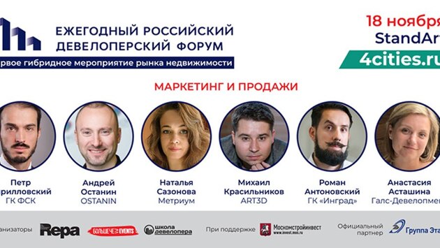 18 ноября с 10:30 до 18:00 на Ежегодном российском девелоперском форуме состоится секция «Маркетинг и продажи». Дискуссия затронет самые разные темы: изменение подхода к проектированию жилых комплексов из-за пандемии, обучение sales-менеджеров, онлайн-аналитику, правила создания продающих сайтов, построение сильного бренда и коммуникационной стратегии.
