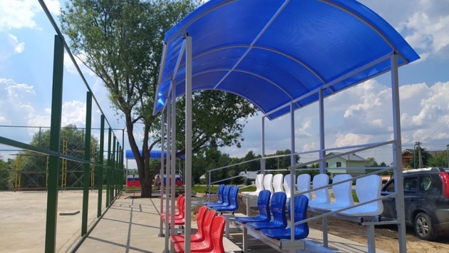 Зрительские трибуны установили на многофункциональной спортивной площадке в Краснопахорском