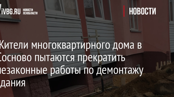 Жители многоквартирного дома в Сосново пытаются прекратить незаконные работы по демонтажу здания