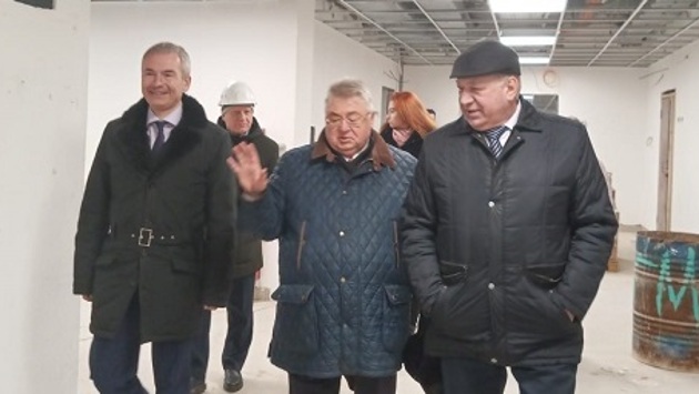 Виктор Волончунас и Сергей Якушев проверили ход строительства детской поликлиники во Фрунзенском районе