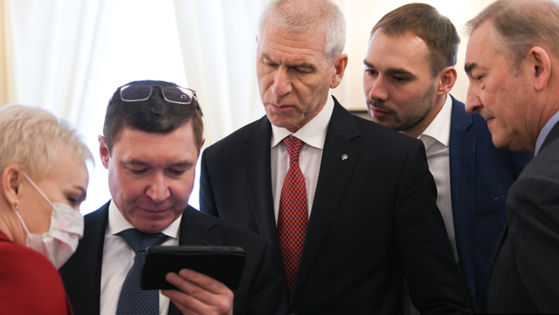 Полпред президента в УрФО Владимир Якушев вместе с министром спорта РФ Олегом Матыциным и зампредседателя комитета Госдумы РФ по физической культуре и спорту Антоном Шипулиным и губернатором Свердловской области Евгением Куйвашевым смотрели мужской масс-старт биатлона на Олимпийских играх-2022 в Пекине на заседании по Универсиаде-2023 в Екатеринбурге. Об этом сообщает корреспондент URA.RU с заседания.