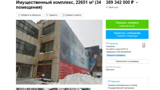Продавцом объекта выступает «РТ-Капитал» - дочерняя компания госкорпорации «Ростех» по работе с непрофильными и проблемными активами.