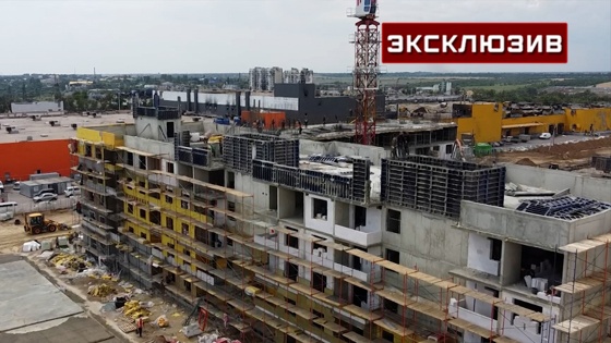 И здесь же по соседству в рекордном темпе - один этаж в два-три дня - продолжается строительство нового жилого комплекса от российского Минобороны. Сразу 12 домов для 2,5 тысяч человек. Первые из них планируют заселить уже этой осенью.