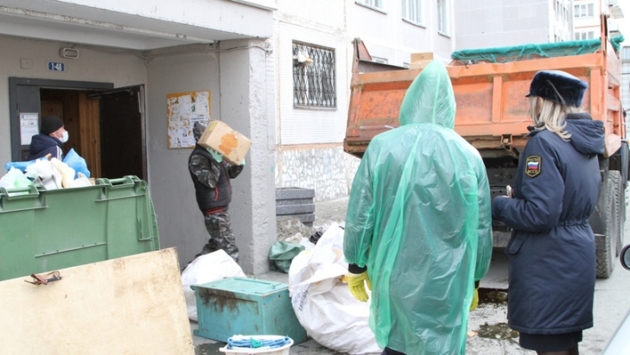 Уборка в квартире с мухами и тараканами длилась пять часов. За это время КамАЗ до отказа заполнили зловонным содержимым «нехорошей» квартиры.