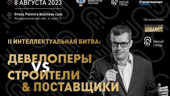8 августа в Москве состоится Интеллектуальная битва «Девелоперы VS Строители & Поставщики» – второй корпоративный IQ чемпионат строительной индустрии, проводимый в рамках реализации проекта Минстроя России «Умный город».