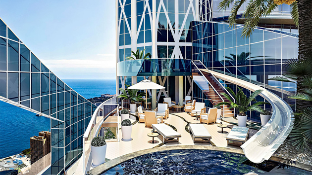 Будущий владелец, если такой найдется, станет обладателем квартиры с видом на Средиземное море общей площадью 3000 квадратных метров. В пентхаусе есть: 5 спален, гостиные, гардеробные, спортзалы и зоны для фитнеса, спа, кинотеатр, детские. Каждая комната этого невероятного жилища спроектирована всемирно известным архитектором Александром Джиральди и имеет уникальное оформление. Изюминкой пентхауса стал огромный бассейн под открытым небом и высокая горка, по которой можно в него спуститься.