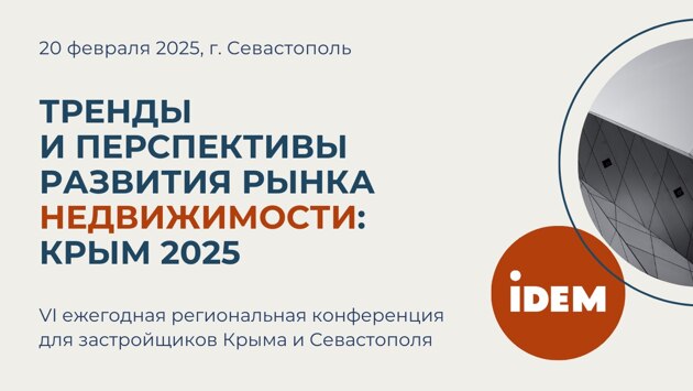 20 февраля 2025 года в Севастополе состоится VI ежегодная региональная конференция для застройщиков и девелоперов «Тренды и перспективы развития рынка недвижимости: Крым 2025». Организатором мероприятия выступает компания IDEM-консалтинг. Впервые доклады конференции охватят все сегменты недвижимости – торговую, складскую, офисную, гостиничную и жилую.