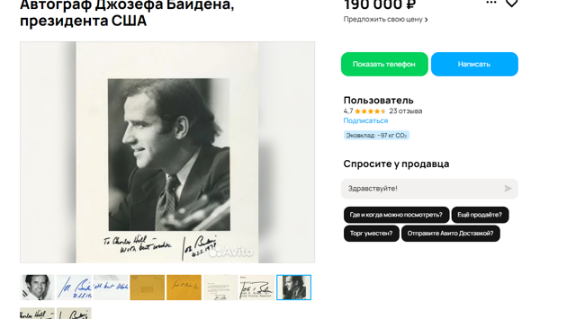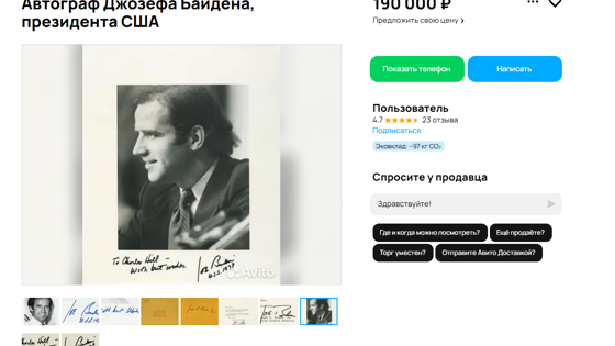 В Новосибирске за 190 тысяч рублей продают автографы бывшего президента США Джо Байдена. Информация появилась на сайте объявлений.