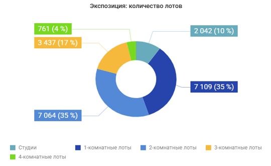 Площадь квартир, кв. мКол-во лотов, тыс. шт. Доля на рынке, %до 301,68%30-402,713%40-503,819%50-602,713%60-703,115%70-802,311%80-901,57%90-10015%от 1001,89%Всего20,5100%