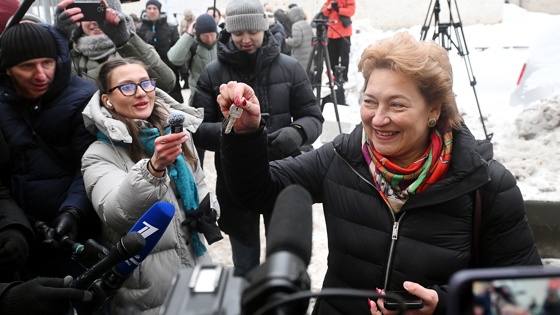 Ранее в понедельник адвокат Полины Лурье Светлана Свириденко показала журналистам ключи от квартиры, где в Хамовниках жила певица Лариса Долина - сторона покупательницы жилья получила их без происшествий и назвала связку "символом победы и справедливости".
